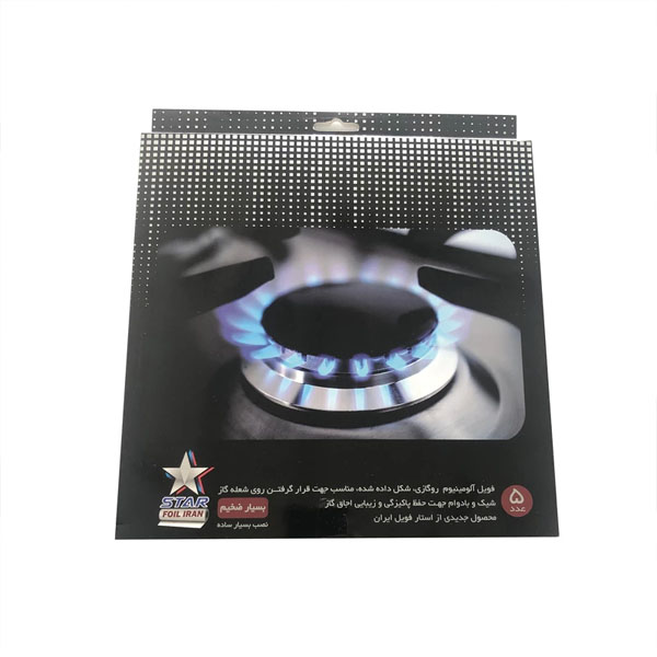این فویل در بسته های 5 عددی عرضه می شود که قابلیت استفاده روی تمامی شعله های گاز را دارند. در هر بسته بندی ۵ عدد فویل رو گازی شامل ۲ عدد سایز بزرگ با قطر ۱۰ سانتی متر و ۳ عدد سایز کوچک با قطر ۶ سانتی متر دارای طول ۲۲.۵ سانتی متر، عرض ۲۲.۵ سانتی متر و ضخامت ۶۰ میکرون قرار دارد.